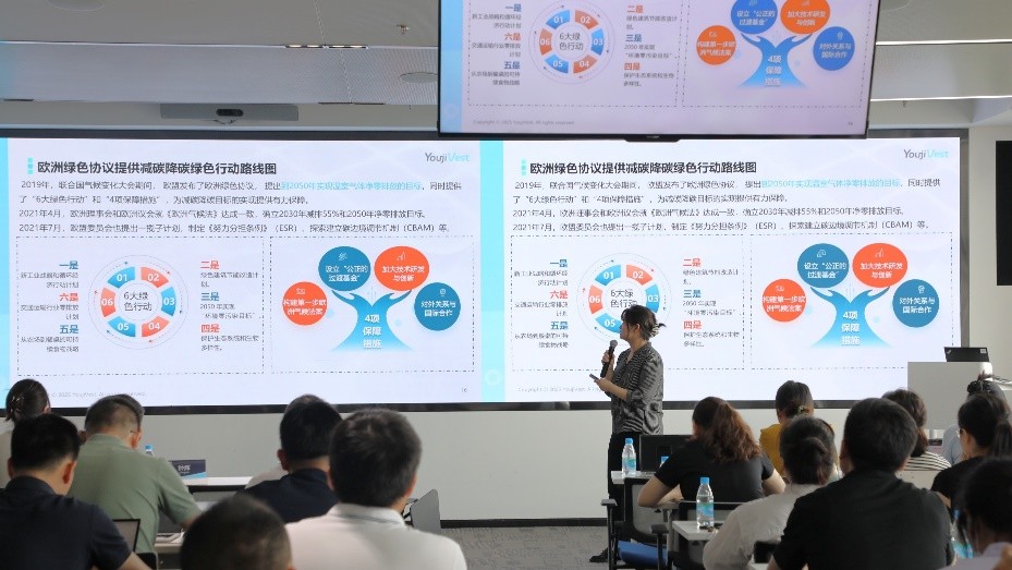 The program featured YoujiVest, a professional ESG consulting organization with a global perspective, which provided expert interpretation of the latest international ESG policies and best practices. In the opening session, a YoujiVest lecturer delivered an in-depth analysis of supply chain transformation under the wave of international ESG compliance, systematically explaining the critical impacts of new sustainability regulations on suppliers. The course emphasized that, with mandatory disclosure requirements being implemented worldwide, companies must establish end-to-end responsibility management systems covering raw material procurement, manufacturing, and logistics. Environmental management, labor rights protection, and business ethics must be deeply integrated into business operations. Through case studies, the lecturer also highlighted the risks of non-compliance, such as trade barriers and legal penalties, stressing that ESG capability has become a strategic necessity in global competition. Companies that take the lead in building ESG capacity can secure market access through compliance reviews, reshape brand value through sustainable practices, and ultimately seize high-value positions in the green supply chain landscape.